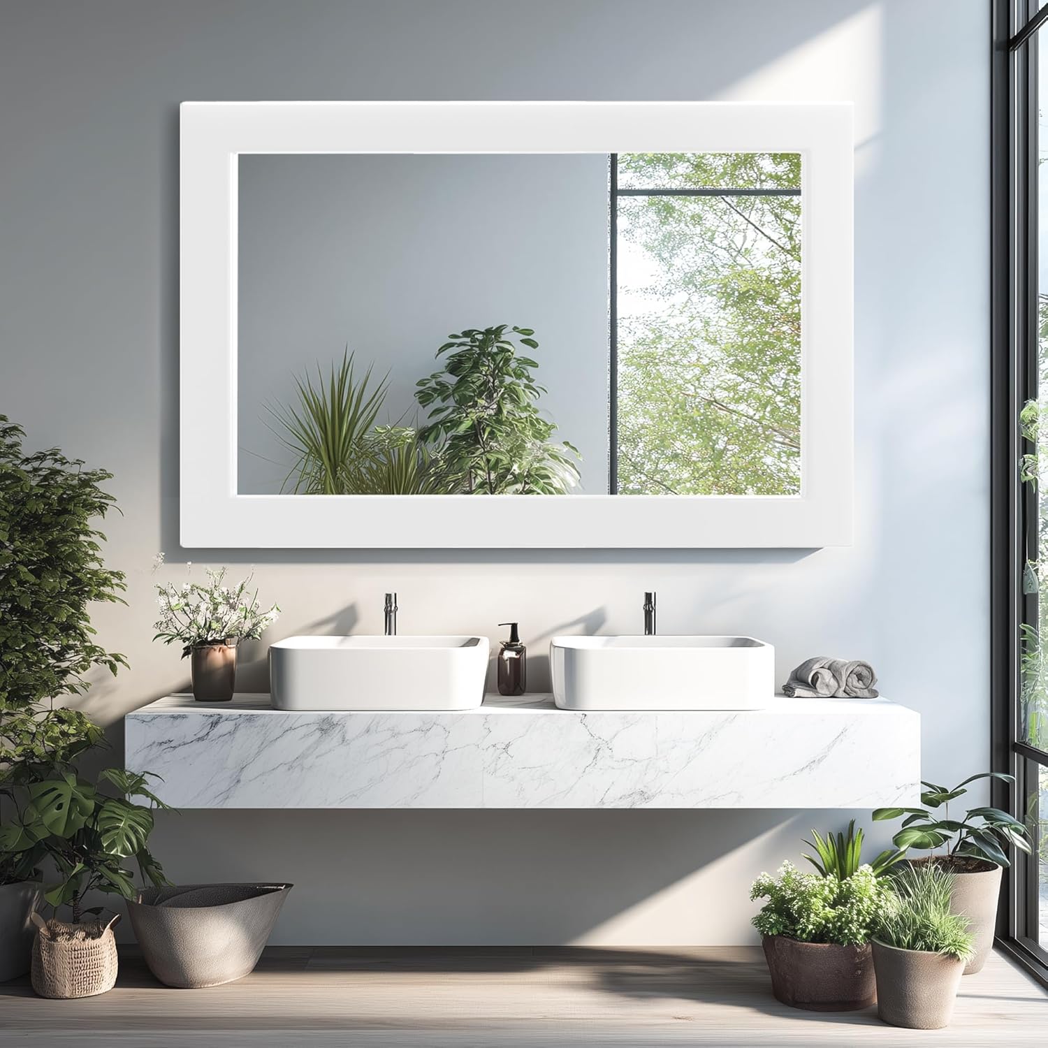 • Easy to install: This wall decoration mirror comes with pre-installed hooks and can be hung vertically or horizontally. The glass mirror is firmly embedded in the frame and has a reinforced solid backrest for enhanced stability.