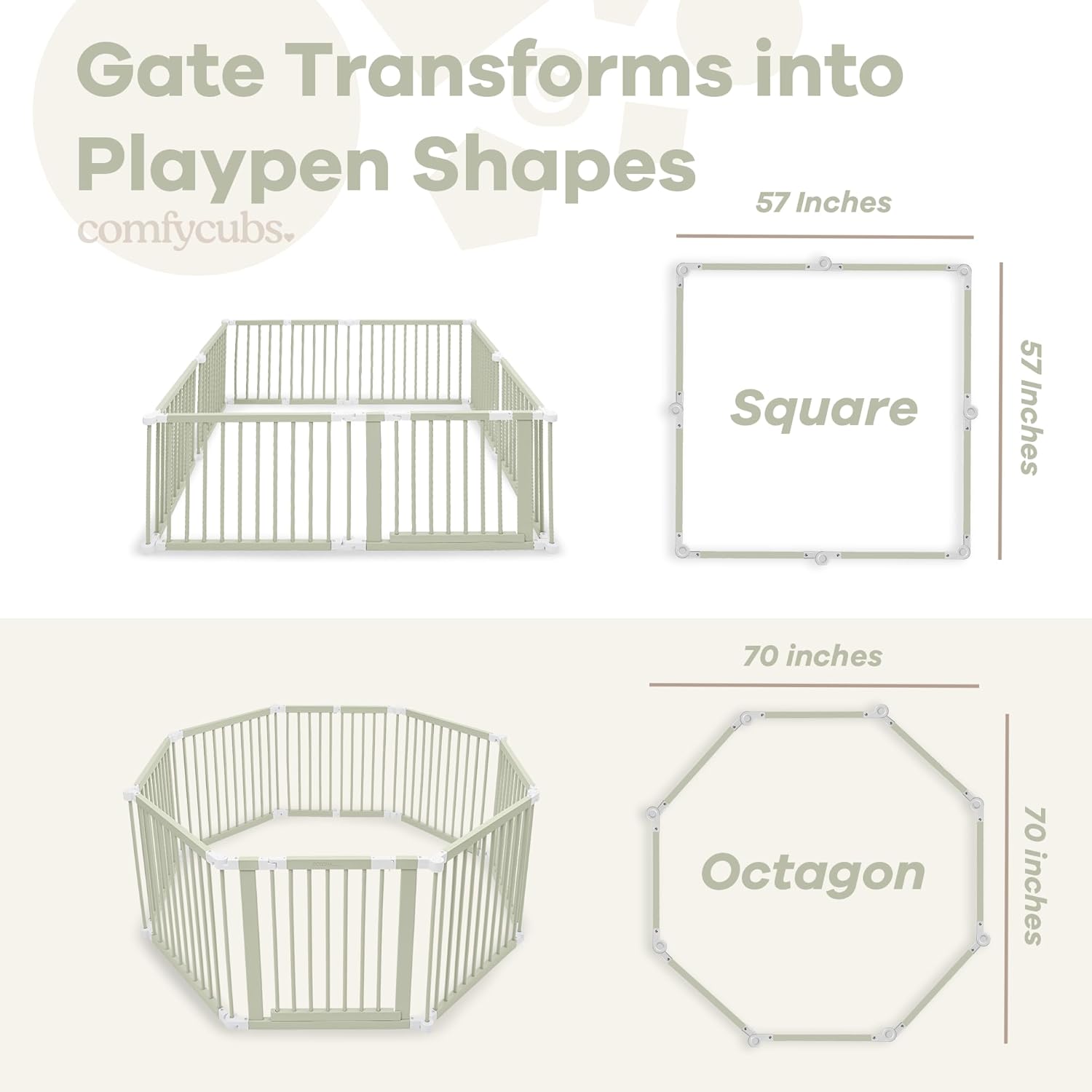 Comfy Cubs Stacking Rocks 36 Pieces and Gate Playpen - 57 x 57 x 25 in, Extends Up to 228” Bundled
