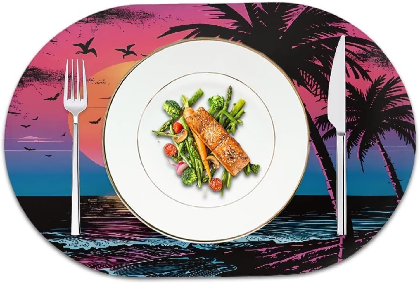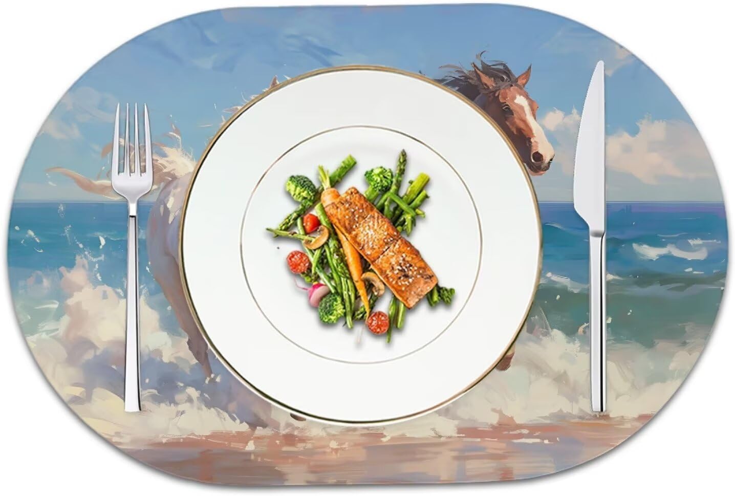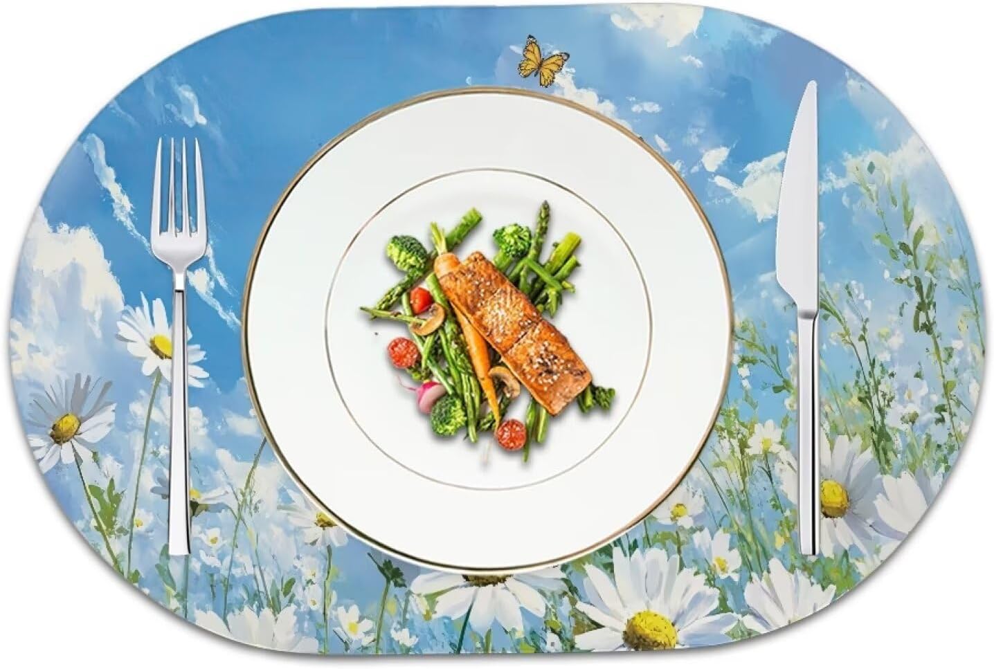 Hechitok Oval Leather Placemat Material: Using PU fabric, soft and thick, skin-friendly, comfortable and elastic, anti-slip, anti-oil stains, corrosion-resistant, wear-resistant, multiple attributes added to the pursuit of exquisite experience. Size: Our placemat size is 12.2 x 18.1 inch Oval placemats is suitable for indoor and outdoor. Such as family kitchen, restaurant, coffee shop, dining table, business office, party dinner, barbecue, wedding, etc. Suitable for making housewarming gifts,hostess gifts,birthday Mother's Day Christmas Thanksgiving gifts for mom grandma wife aunt coworker neighbor or any friends. A variety of fashion prints are available to make you stand out from the crowd. Due to different measurement methods, errors within 1-2cm are normal.