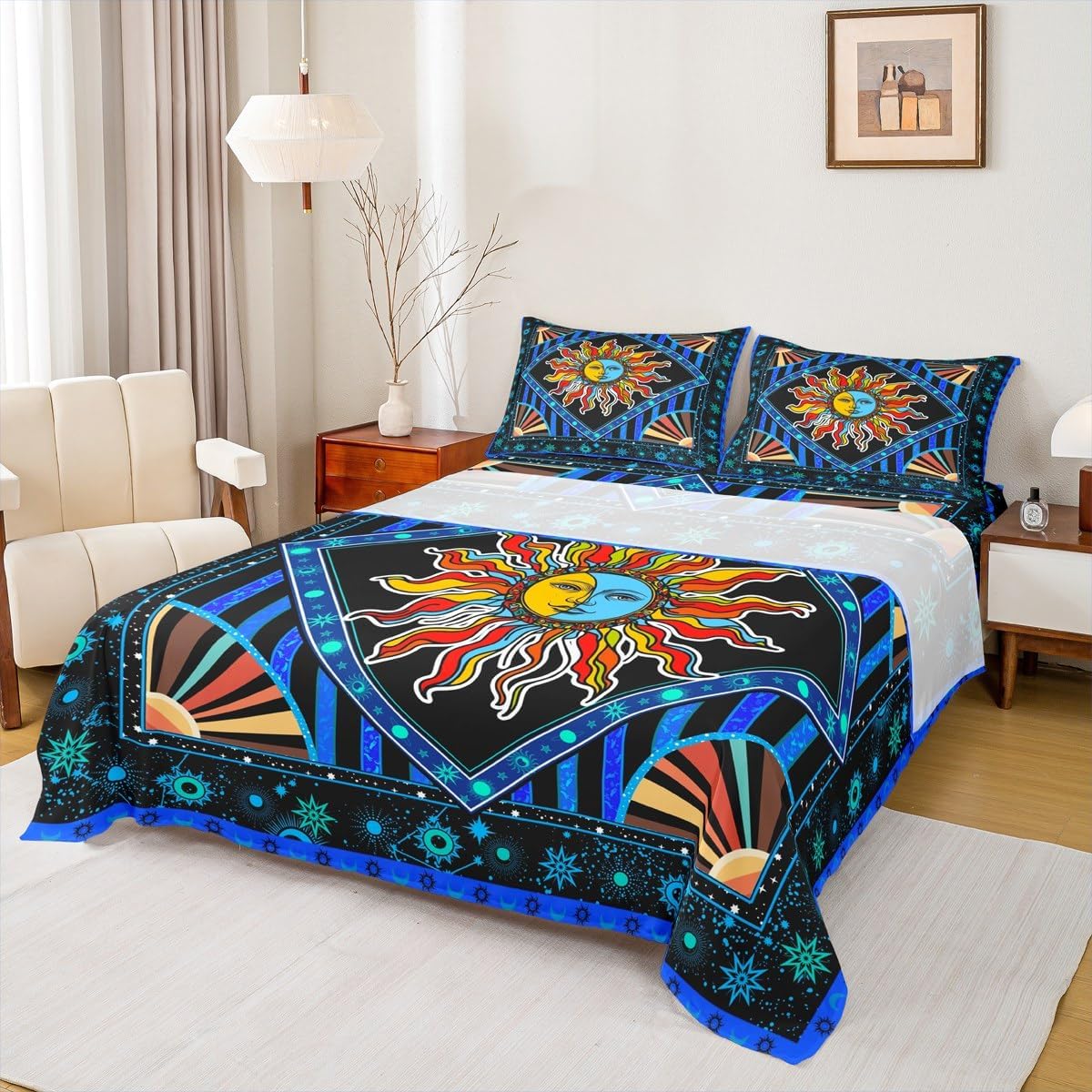 Elevate your bedroom decor with this exquisite bed sheets set featuring an aesthetic design. Inspired by all the beautiful things in the world, this stylish artwork captures the essence of vibrant pattern on soft, cozy bedding. The vibrant colors and intricate details create a serene and calming atmosphere, suitable for a peaceful night's rest. Crafted from ultra soft materials, this sheet set is not only visually stunning but also incredibly comfortable and stylish. Whether you're seeking a touch of modern charm or a vintage oasis, this bed set will transform your bedroom into a tranquil retreat. Elevate your sleeping experience with this artistic masterpiece.