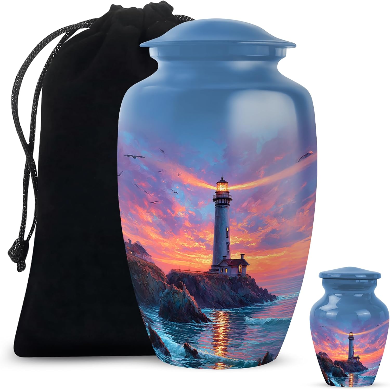 The YATHABHISA Lighthouse Cremation Urn is a beautifully handcrafted tribute designed to honor the memory of a beloved family member. Featuring a delicate Lighthouse in flight, this urn symbolizes joy, freedom, and the spiritual presence of those who have passed. Made from durable materials, it securely holds the ashes of a human adult, making it ideal for funeral ceremonies, burial, or home memorial displays. The medium size is perfect for honoring a father, mother, or loved one with elegance and respect. This Lighthouse urn for ashes is not just a functional container—it’s a meaningful expression of love and remembrance. Whether given as a memorial gift Lighthouse urn or chosen for personal reflection, it offers a timeless way to keep their spirit close. With its detailed design and secure lid, this cremation urn for human adult ashes provides peace, beauty, and dignity in one graceful form.