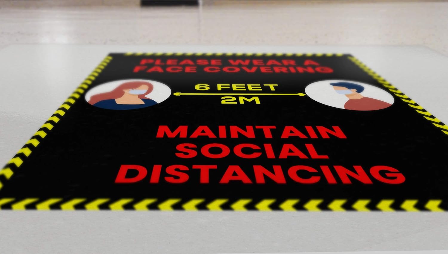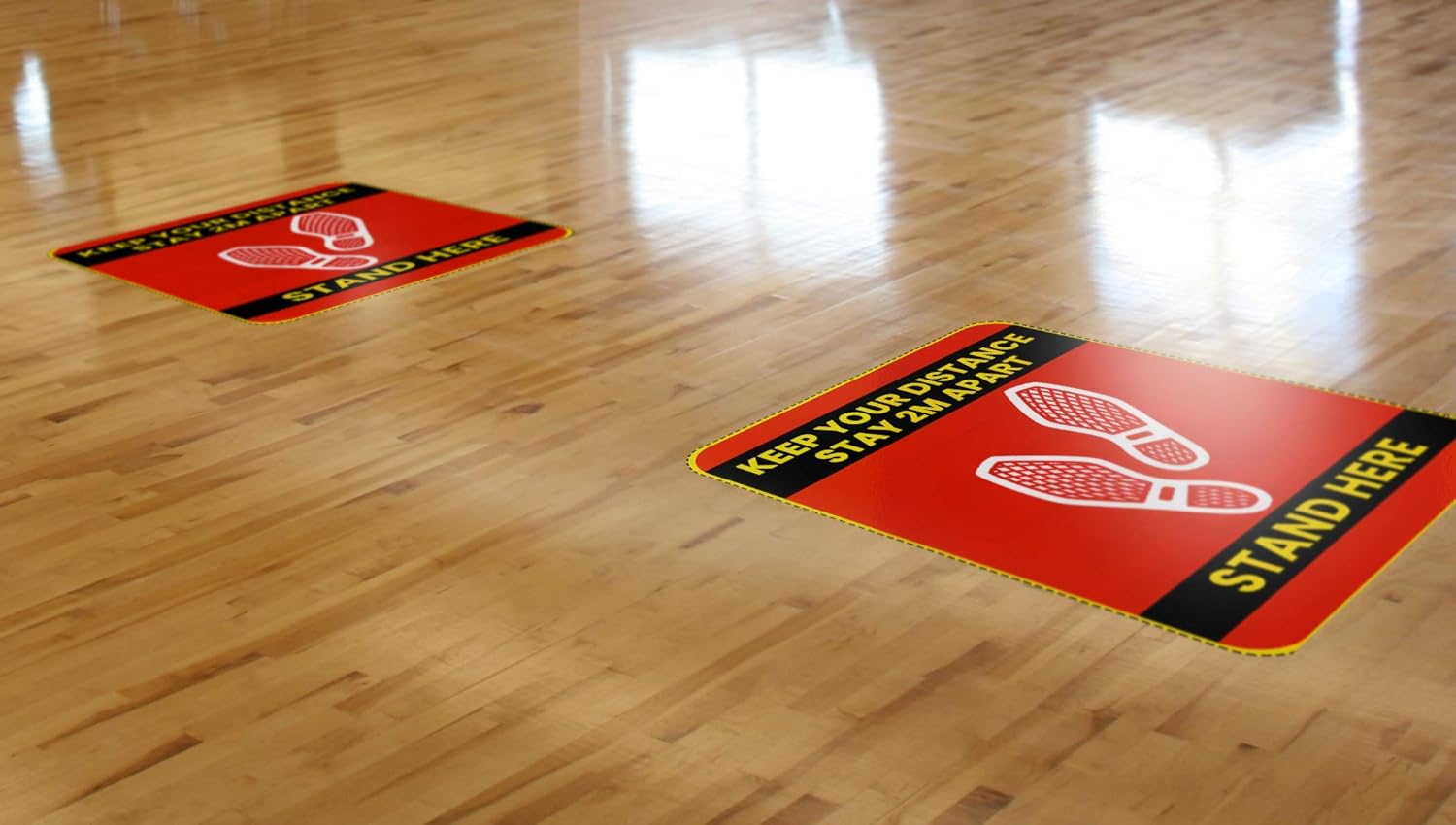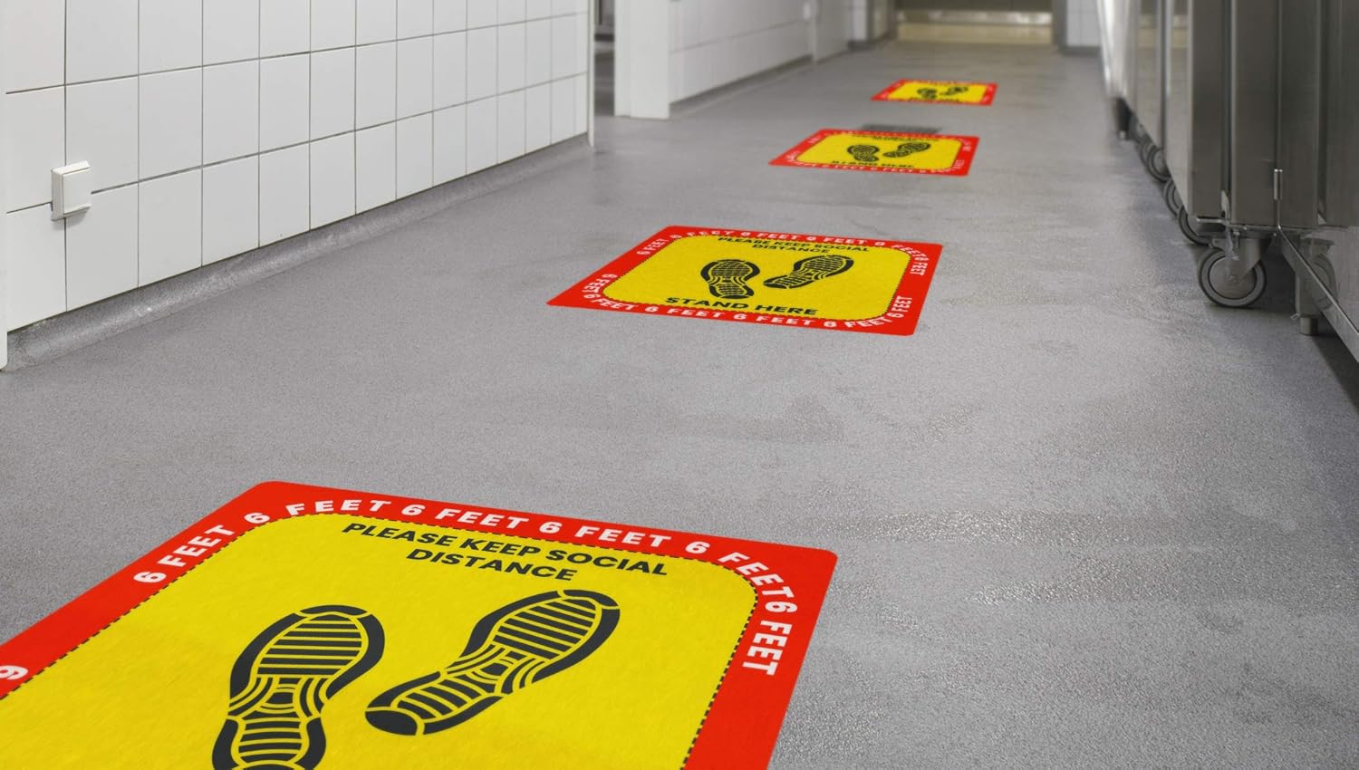 ✅ — NON-SLIP TEXTURED PVC MATERIAL: This PVC has a post-printed anti-slip rating of R10, according to DIN 51130:2010, which allows for vibrant, slip-resistant floor graphics. If they get any creases during installation, you can simply heat up the area with a heat gun or hair dryer and press the wrinkle out.✅ — PRESSURE SENSITIVE: Made of 200μ White Matte Monomeric PVC - It’s an embossed printable white matte film that is coated on one side with a dotted-pattern and removable pressure sensitive Acrylate polymer adhesive.✅ MADE IN THE USA: — Created in our manufacturing facility located in the USA. These floor decals were designed for grocery stores, Dr. Offices, Hospitals and anywhere else that a crowd of people gathers. Can be re-applied and re-positioned over and over again without issue of losing it’s patented adhesive backing. ✅ — DURABLE & WATERPROOF: Our social distancing floor decal stickers are slip resistant and scuff resistant. They are suitable for any floor, you can removable or re-locate at anytime. ✅ — IDEAL FOR HIGH FOOT-TRAFFIC AREAS: This floor decal is perfect for crowd control guidance, pharmacy, bank, lab, grocery stores, Dr. offices, hospitals, malls and anywhere else that a line of people gathering. Our bright & durable floor decal to help everyone practice social distancing.✅ — COMMERCIAL USE: Commercial Social Distancing Floor Stickers help keep your customers and employees safe with these social distancing floor signs.✅ — CUSTOM DESIGNS ARE WELCOME! You guessed it, we can customize these to fit your branding needs. Whether you have your very own wording or logo needed, we are here to help deliver a customized product you desire in any design or size!