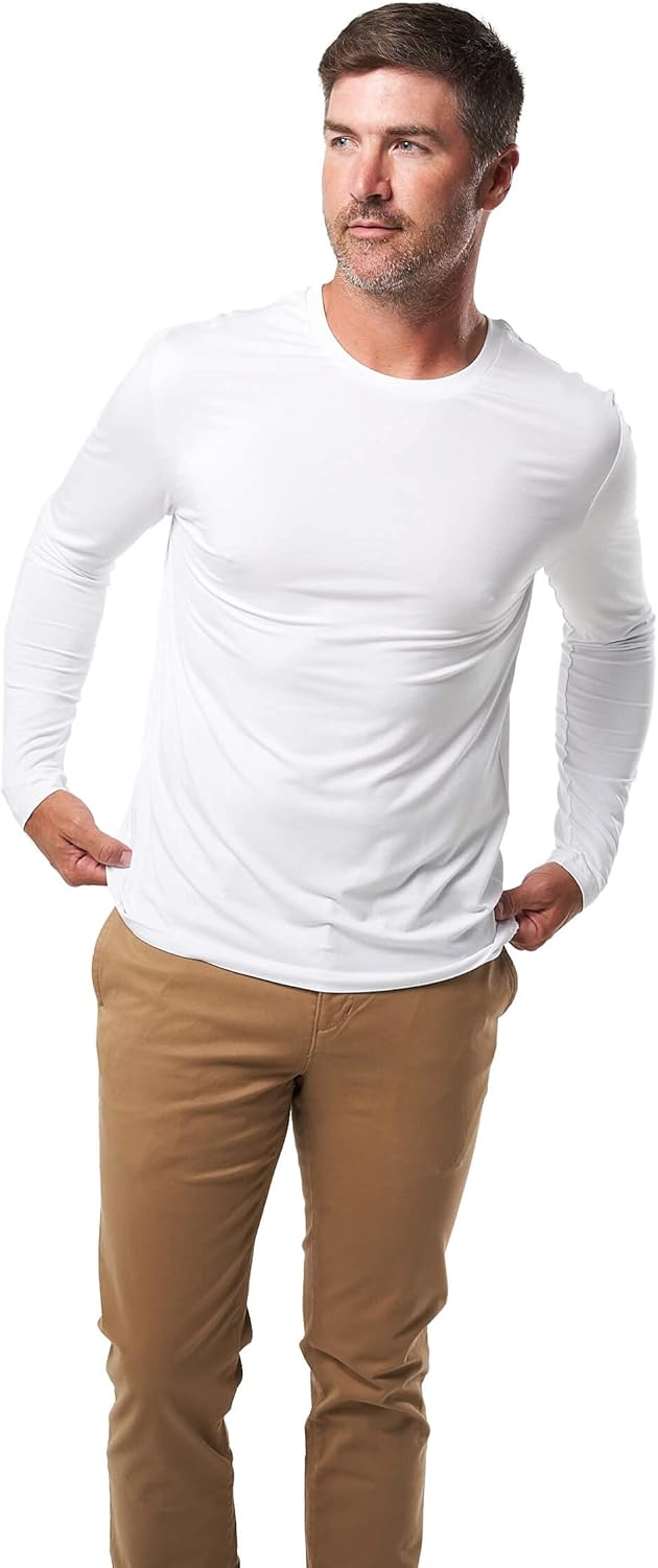 Introducing the Mr. Davis Versatile Long Sleeve Undershirt, the perfect addition to your wardrobe for all-day comfort. Made with the softest fabric available, our ultra-thin blend of 96% Bamboo Viscose and 4% Spandex will have you feeling like you're wearing nothing at all. The stretchy material moves with you, providing ultimate comfort that you won't find in any cotton shirt.Designed to FitWe understand the importance of the right fit, which is why our long sleeve undershirt is designed around our Traditional Cut Undershirt. With just the right amount of room in the body, this versatile shirt can be used for lounging and sleeping, while still being comfortable under a sweater or fleece in the Winter. You'll love how it fits and feels against your skin, providing you with the perfect combination of comfort and support.VersatileOur long sleeve undershirt is incredibly versatile. Wear it on its own for lounging or as a sleep shirt, or layer it under a dress shirt, sweatshirt, or sweater for added warmth and comfort. It's the perfect addition to your wardrobe, providing you with all-day comfort and support. Our long sleeve undershirt is available in four colors and two neck styles.Quality GuaranteeWe believe in the quality of our product, which is why we offer a 100% satisfaction guarantee. If you're not completely satisfied with your purchase, just let us know and we'll make it right.In conclusion, the Mr. Davis Versatile Long Sleeve Undershirt is the perfect addition to your wardrobe for all-day comfort. Made with the softest fabric available and designed for the perfect fit, you won't find a better undershirt anywhere else. Plus, with our commitment to quality and customer satisfaction, you can shop with confidence. Order your long sleeve undershirt today and experience the ultimate comfort and support that you deserve.ADD TO CART