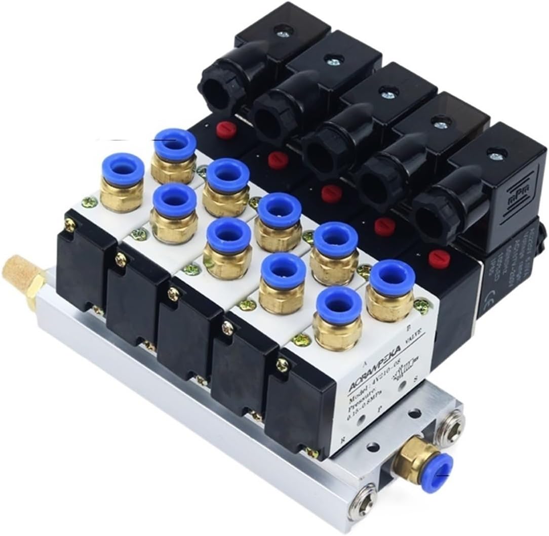 Solenoid ValvesProduct Name : 4V210-08 Solenoid Valve Block withBase Muffler FitingModel :4V210-08( Thread =1/4")Working Pressure : 0.15~0.8Mpa;Working Voltage Option:12VDC 24VDC 110VAC 220VAC Position & Way Number 2 Position 5 Way;Quick Fitting Inner Dia--on the Valve. 4mm,6mm,8mm,10mm;Quick Fitting Inner Dia--on the Base. 8mmPlease leave a message if you needother sizeFitting ConnectorsExternal Material : Metal, Plastic, BrasValve block Option:2 way ~ 6 wayCoil Option :LED indicator coil