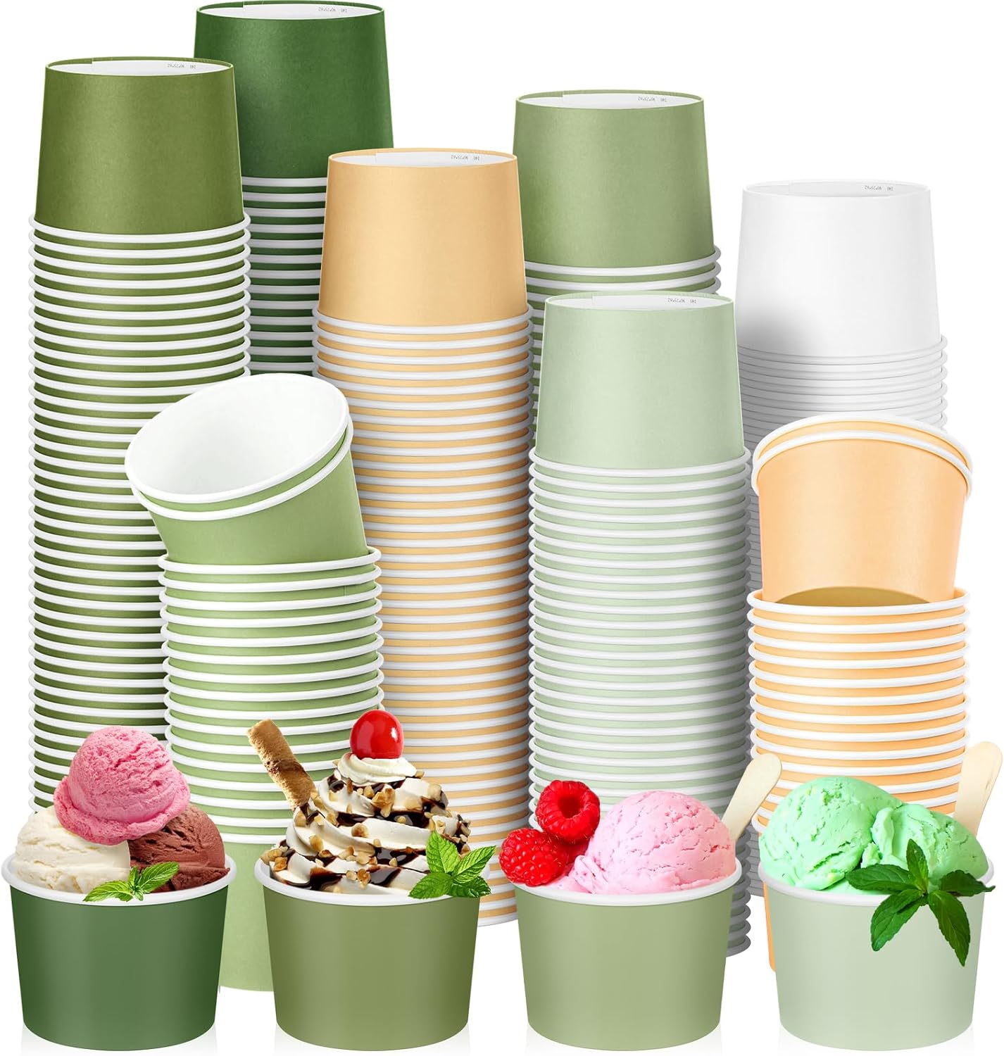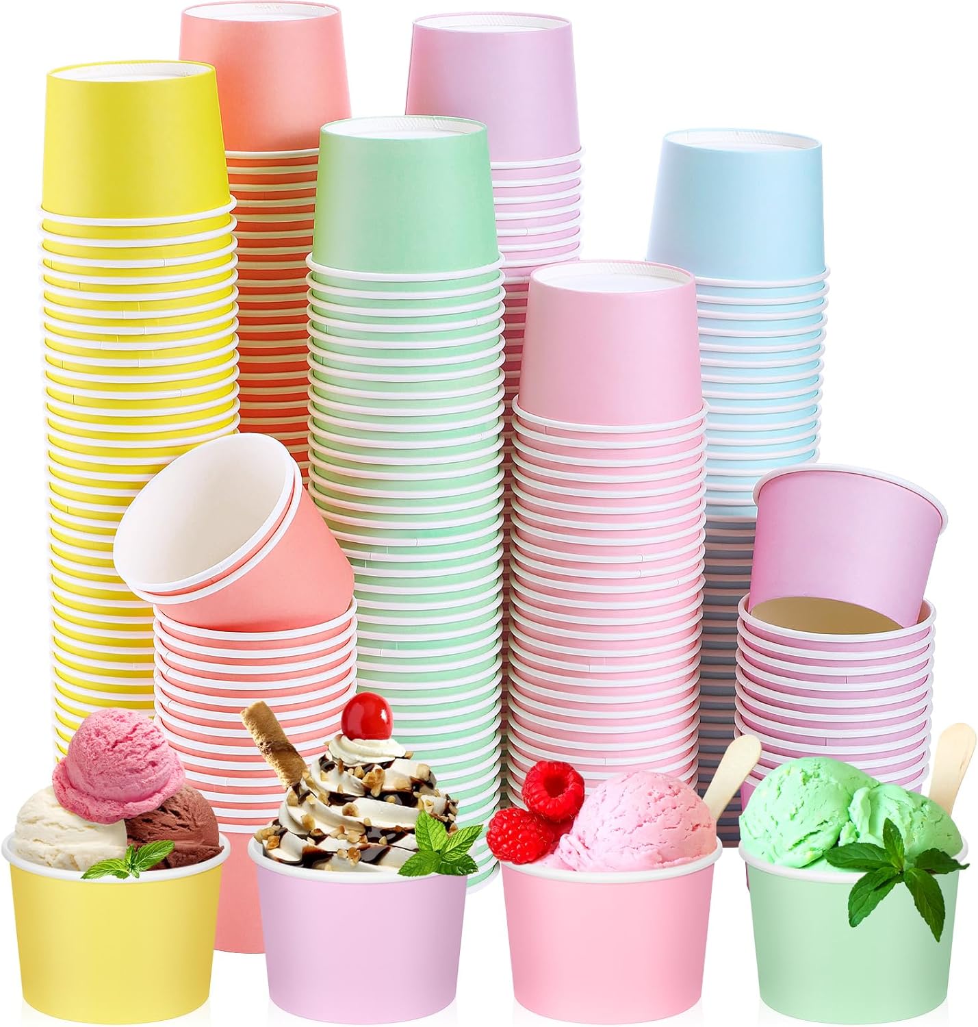 • Versatile Dessert Cups: in addition to serving ice cream, milkshakes, and other frozen foods, these ice cream cups can also be applied to serve other dishes such as macaroni, oatmeal, soup, snacks, cupcakes, cakes, popcorn, fruit, candies, biscuits, french fries or whatever you want to make your food look more delicious and sophisticated
