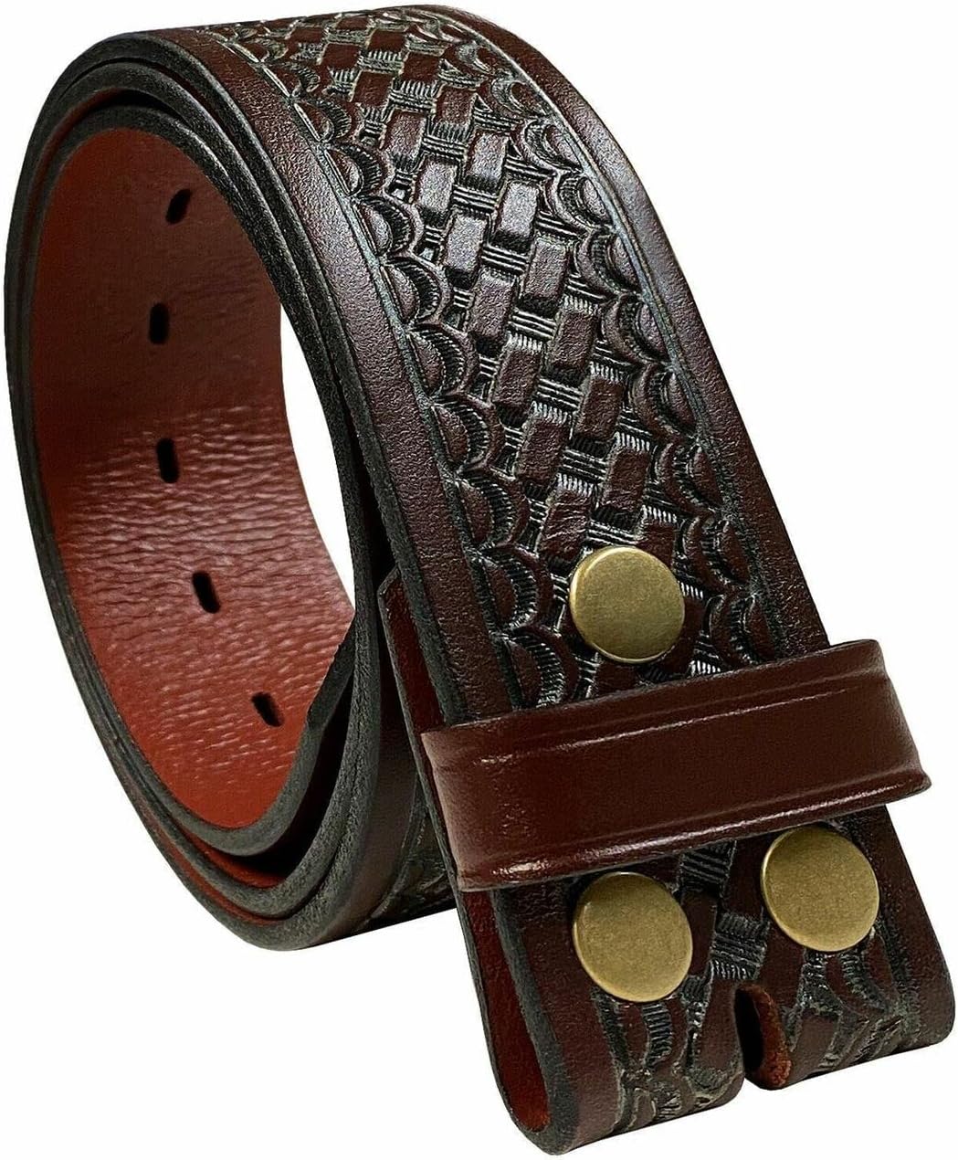 Made from high-quality one-piece full-grain cowhide leather 100% Genuine leather. 1-3/4"(45mm) wide with belt 7 belt holes for plenty of room for adjustments to offer maximum comfort. Convenient snap system for interchanging buckles making it a versatile strap for different occasions. Durable belt strap with basketweave embossing for work, uniform or a gun belt. Classic casual Leather belt never out of fashion. ★★★ How to measure your Belt size ★★★: The best way is to measure around where you wear the belt and add 2 inches to the measurement. Our belts are measured from the fold where the buckle is attached to the middle hole. If you want to get the best size we recommend measuring a belt that works for you from the fold to the hole where you wear the belt.